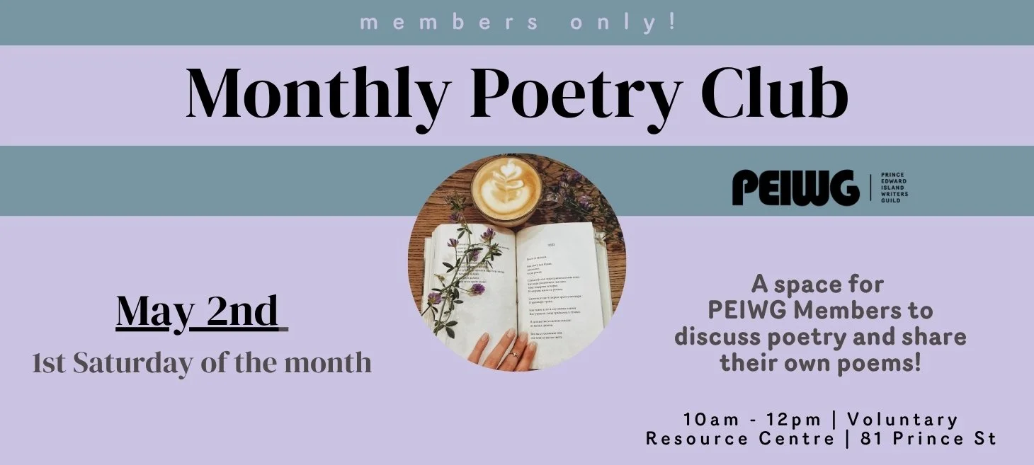 This club is for folks who LOVE poetry! We meet on the 1st Saturday of every month at 10am at the Voluntary Resource Centre (81 Prince Street, Charlottetown) to discuss poetry that we love.